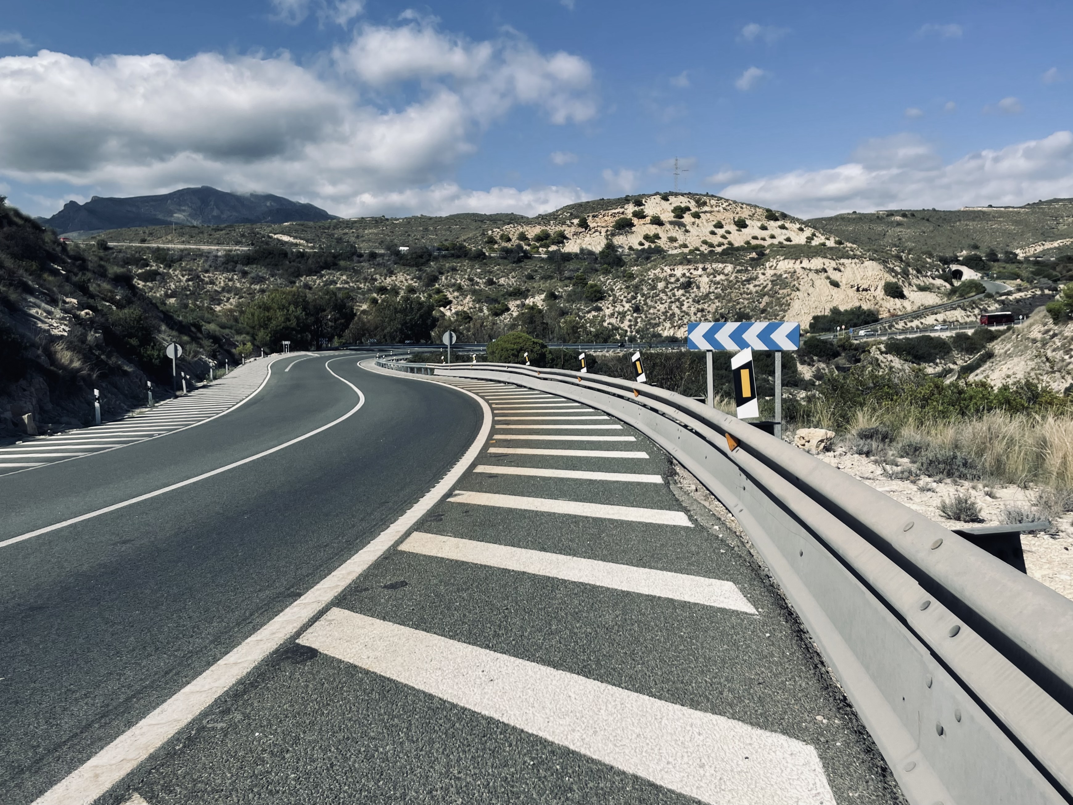 Now you see where this takes us? Back to the N322 we had rejected all that way back and two hours ago. By this time Jacqui is cycling with chocolate legs and reminding me every 5 minutes that we last ate well over eight hours ago. No almonds and dried apricots are available and no sign of our Portugal Support Vehicle and Team. So we plod on for another hour or so and finally, finally, ride into Vilajoyosa – to find we cannot find the hostal we are booked into. This time, however Google Maps does us proud.