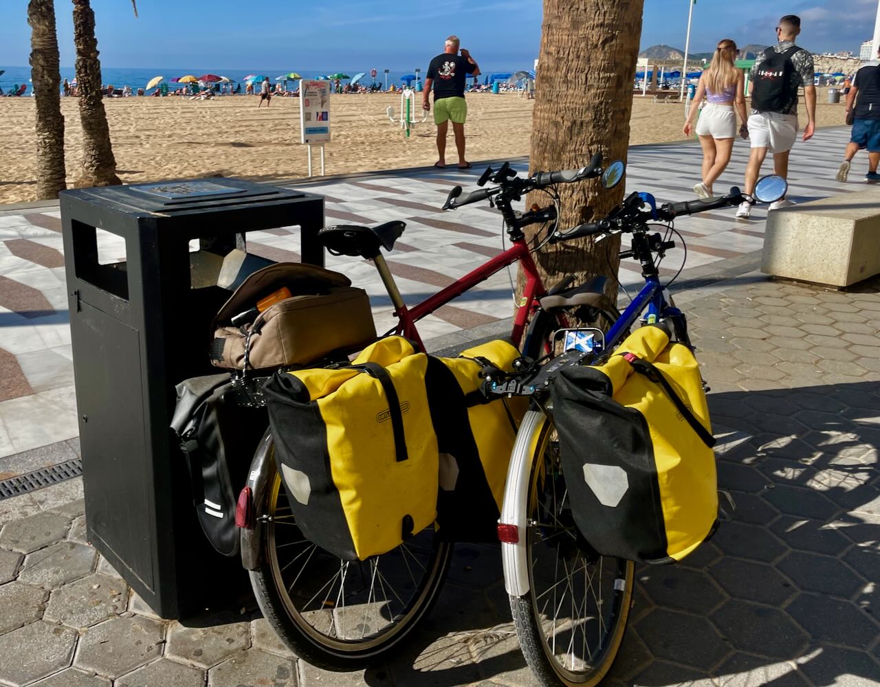 Unfortunately, this meant tracking back through Benidorm, fully from East to West. As you would expect, Benidorm is very busy, even at this time of year. Some areas of the city are packed with pedestrians and some busy with cars. Both of these mix badly with bicycles, so we were a little wary when we set off this morning. We first headed for the beach and a stop of coffee on the sea front.
