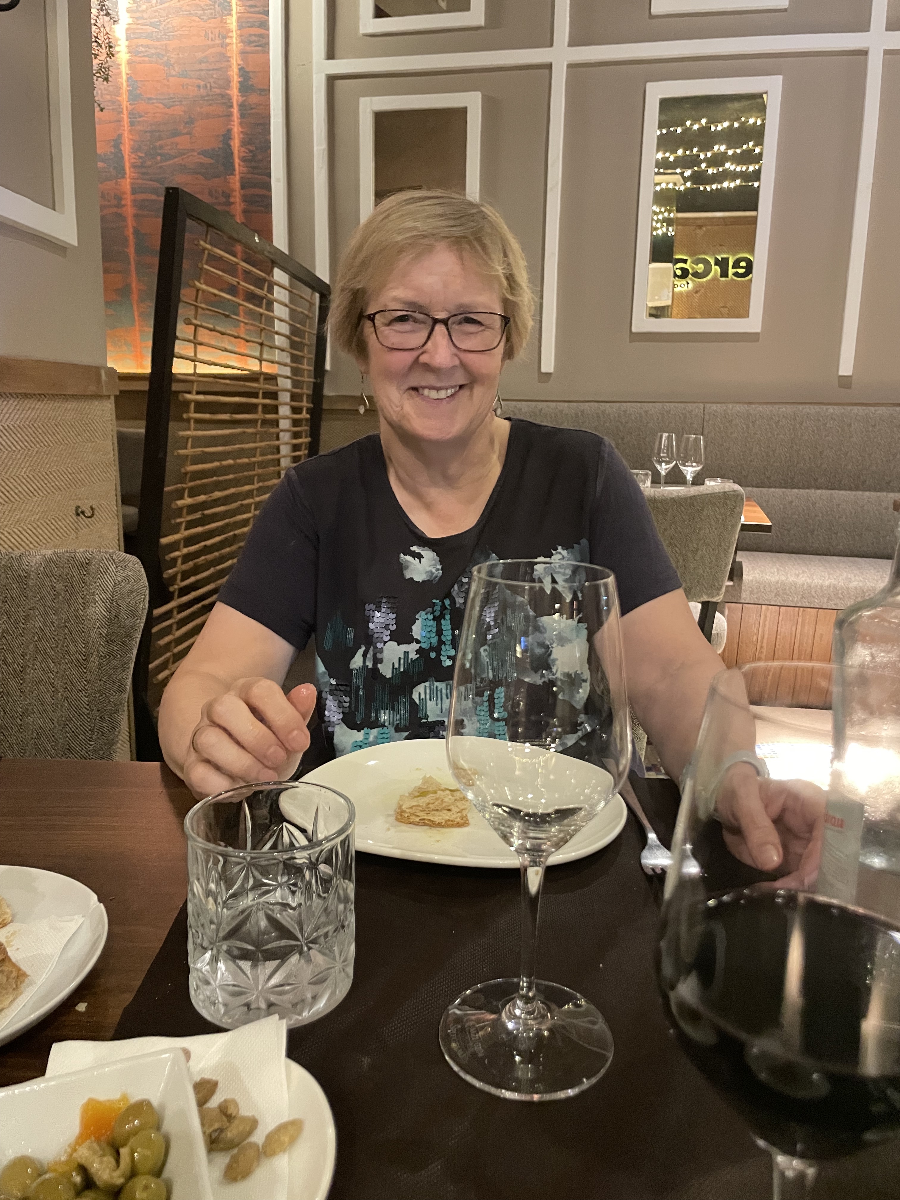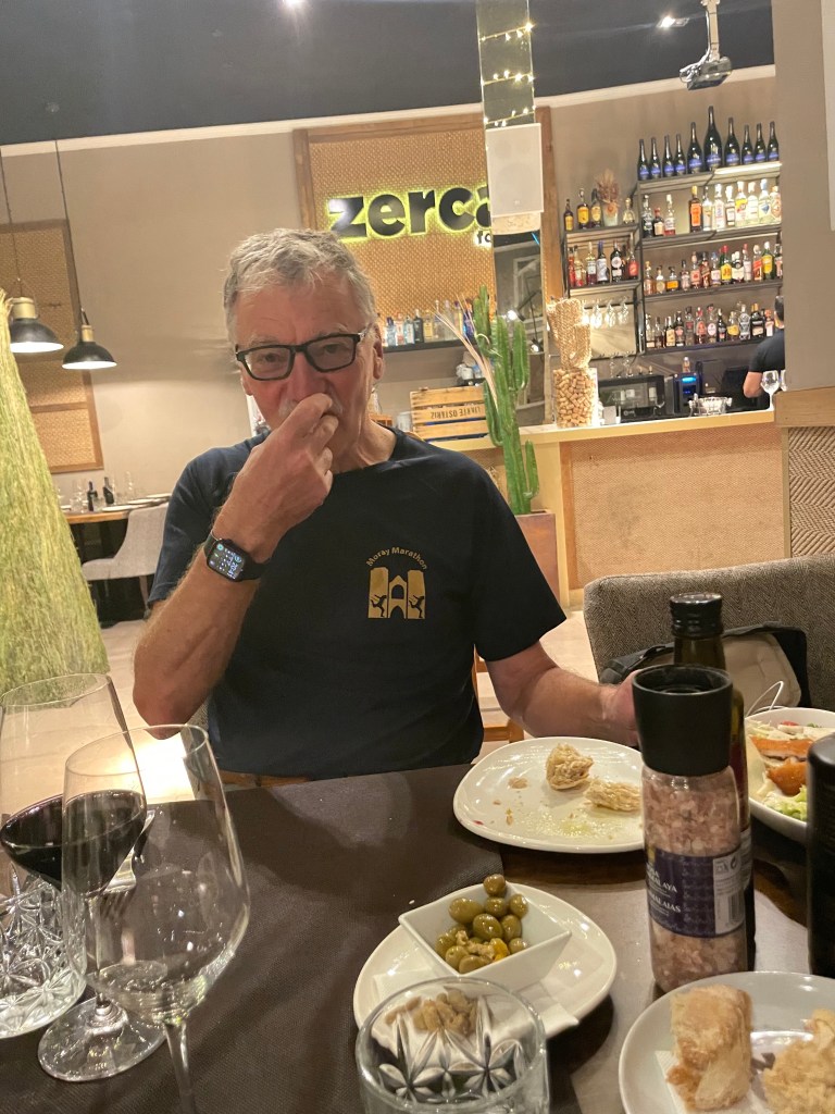 We were in great shape then to head out this evening for drinks in various cafe bars before enjoying an excellent dinner at the Zerca Restaurant in the heart of the old town. 42 euros for an excellent bread with olive oil, olives, shared salad and durado with creamed sweet potato, wine, water and coffee. Brilliant! All outside tables taken so we were forced indoors. No big deal and all rather posh.